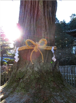 冨士浅間神社 御神木越しに御来光。
