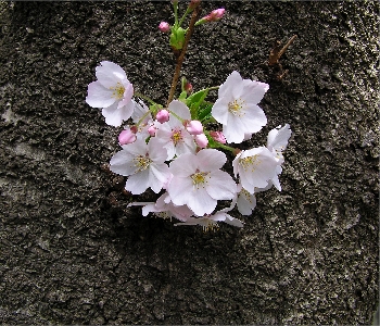サクラのピンクに感動してその成長を祈り、同じ