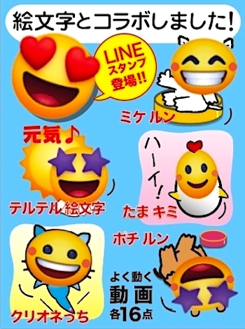 表情豊かな絵文字キャラが、動画の最後にアップ!!