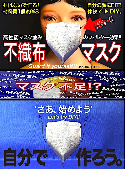 体マスク。不織布はCD/DVDのケースをそのまま使用。