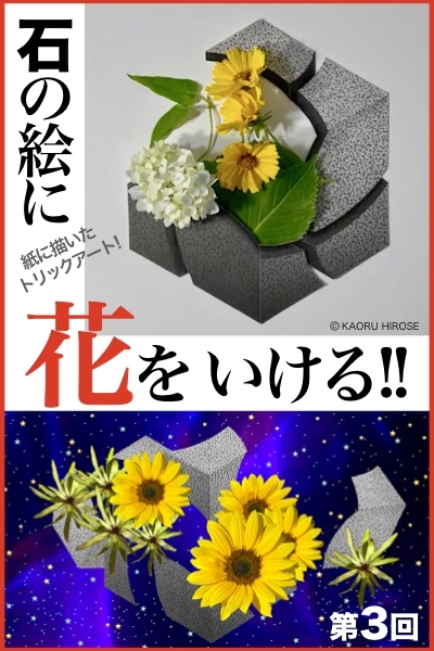 トリックアートの[幻の石]と➕いけ花のコラボレー
